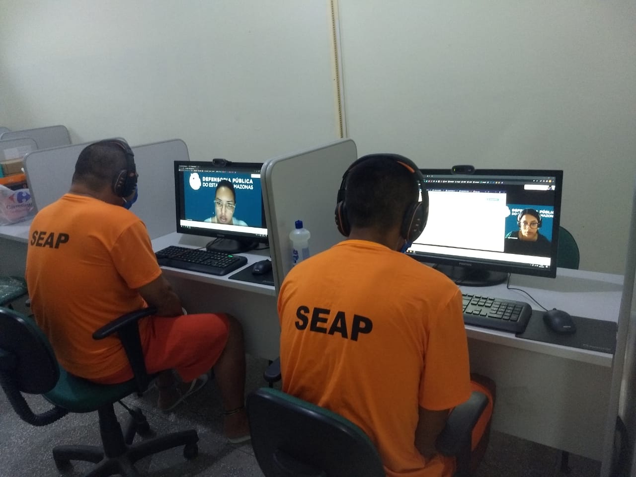 A Defensoria forneceu os computadores necessários para a realização das videochamadas, e toda a logística é feita de forma coordenada entre o NAP e a coordenação do sistema prisional. A Seap realizou o transporte dos equipamentos a todas as unidades prisionais de Manaus, fez a instalação dos aparelhos e está dando suporte técnico para a abertura das salas virtuais. São utilizados dois equipamentos por unidade prisional.